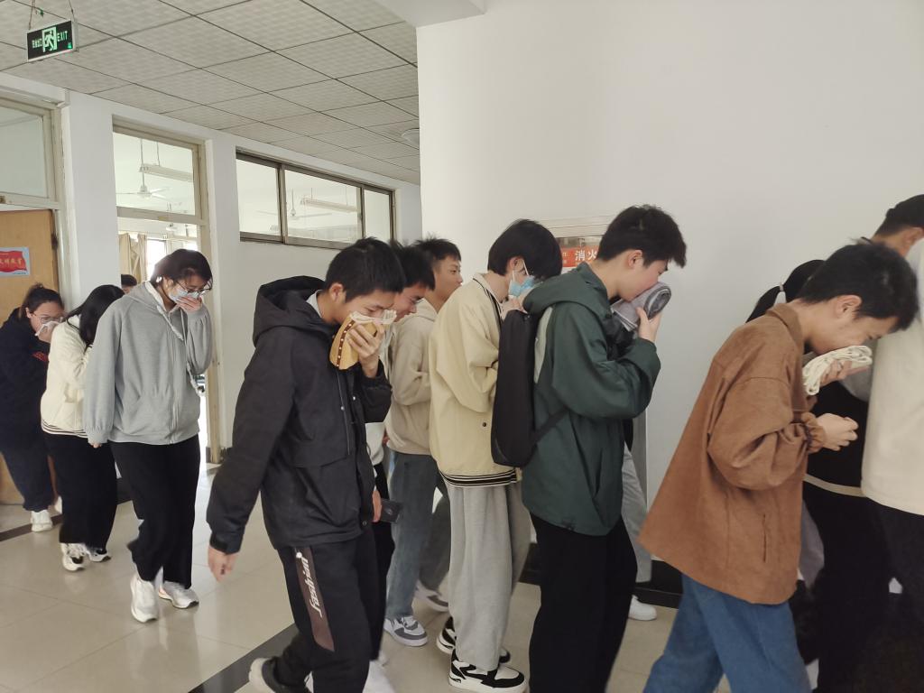 演练开始前,员工会负责人对本次演练工作进行了安排并以PPT的形式展示了如何预防火灾、发生火灾时的应急处置、不同火灾的处置方法以及各类灭火器的正确使用方法等。随着工作人员拉响消防警报,演练开始。全体同学用毛巾、手帕等捂住口鼻,弯腰快步下楼,所有人员快速有序撤离危险区域,到指定地点集合。整个演练过程规范有序、安全高效,顺利完成了有序撤离、转移避险、清点人数、情况上报等全流程规范应急处置。