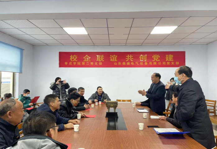 为进一步探索高校与企业党组织党建新模式,增强党建优势互补,以党建促进业务工作,经沟通交流,在2021年12月8日,mk体育教职工第二党支部与山东鼎盛电气设备有限公司党支部开展以“校企联谊,共创党建”为主题的支部交流活动,互相分享学习好经验好做法,促进党建工作共同提升。