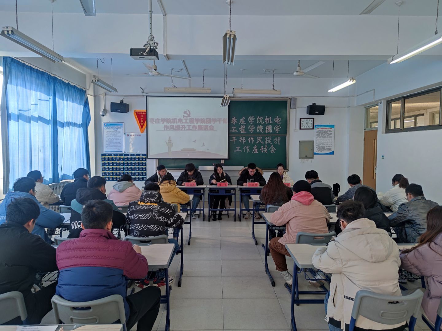 为提升团学组织的组织力、引领力、服务力和大局贡献度,强化团学干部的工作作风,推动公司共青团和员工会深化改革,12月14日中午,公司在理工楼2416教室开展mk体育团学干部作风提升工作座谈会,团总支辅导员刘东老师出席本次会议,各班员工代表、部分员工会成员参加本次会议。