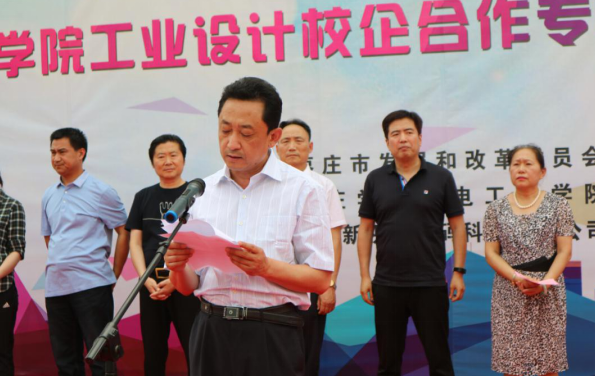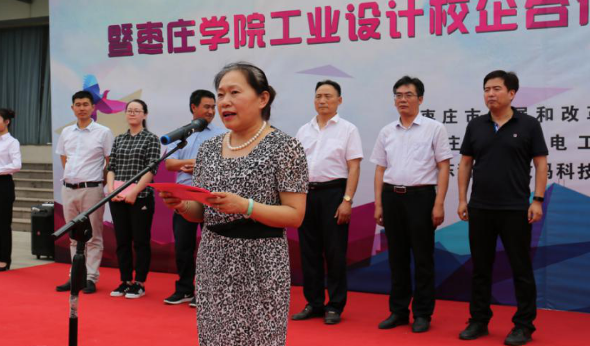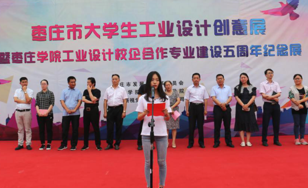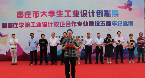 最后,由李丽清董事长宣布:枣庄市老员工工业设计创意展暨mkmksport工业设计校企合作专业建设五周年纪念展开幕!开幕式结束后,与会领导与工业设计专业师生一起移步展厅。