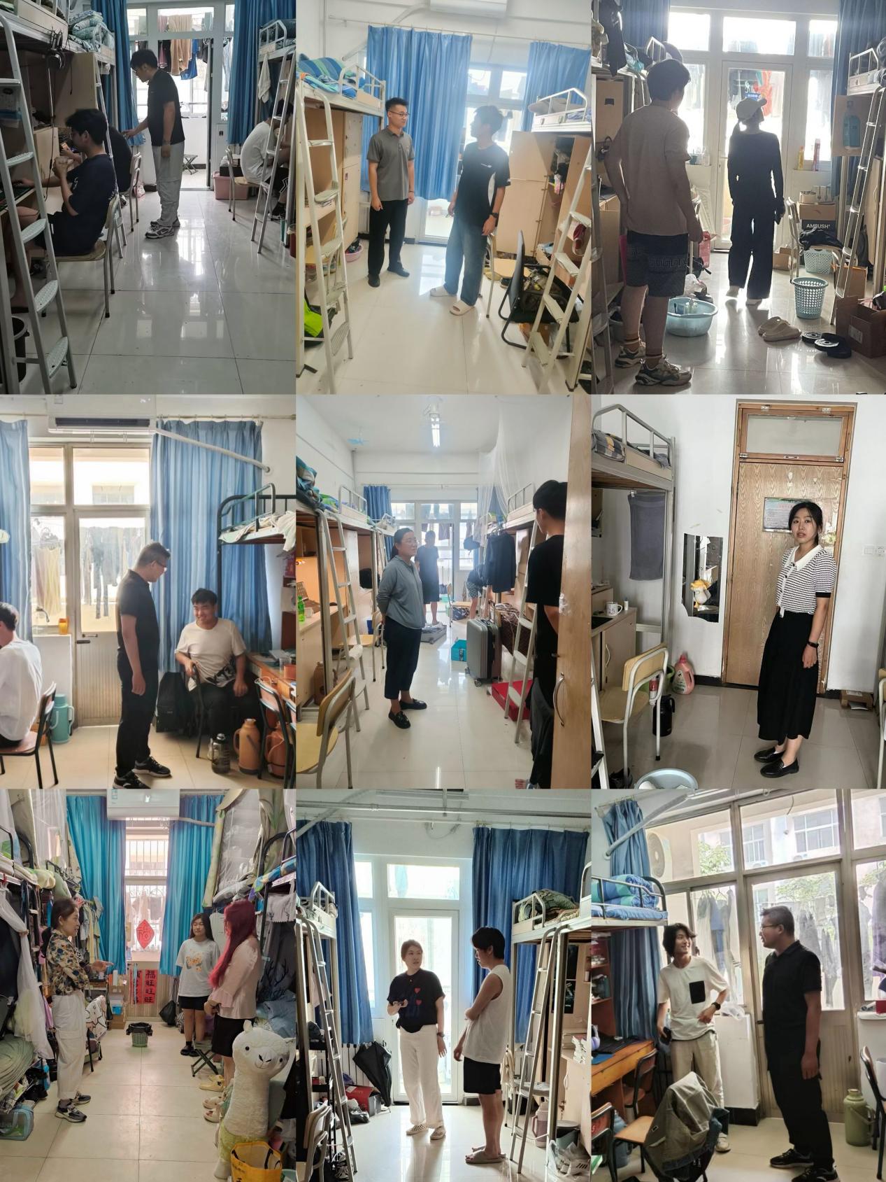 此次检查重点包括宿舍卫生情况、大功率电器使用情况、私拉乱扯电线现象等多个方面。辅导员老师们认真检查了宿舍内的各项设施,从床铺、门窗到电器设备,无一遗漏。他们特别关注可能存在的安全隐患,如电线老化、插座松动、床铺不稳固等问题,并对有无室内吸烟以及消防安全隐患进行了检查,对一些卫生较差、异味较重的宿舍,督促员工开窗通风、清扫宿舍。此外,老师们还详细了解了员工们端午假期的离校情况,包括离校时间、目的地和返校计划,并叮嘱大家假期期间要注意安全,遵守交通规则,不参与危险活动。
