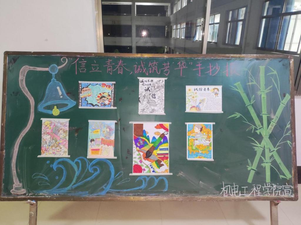 比赛作品中,参赛者紧扣诚信主题,精心设计版面,用绚丽色彩与生动插画勾勒诚信图景,借历史典故、现实案例诠释诚信内涵。有的作品以 “一诺千金” 等传统故事为蓝本,用细腻的工笔展现诚信精神的千年传承;有的结合校园生活,以漫画形式展现考试诚信场景,幽默传递学术诚信理念;更有同学融入齿轮、电路图等机电专业元素,以 “诚信为基,匠心筑梦” 的巧妙构思,实现专业特色与诚信主题的有机融合。