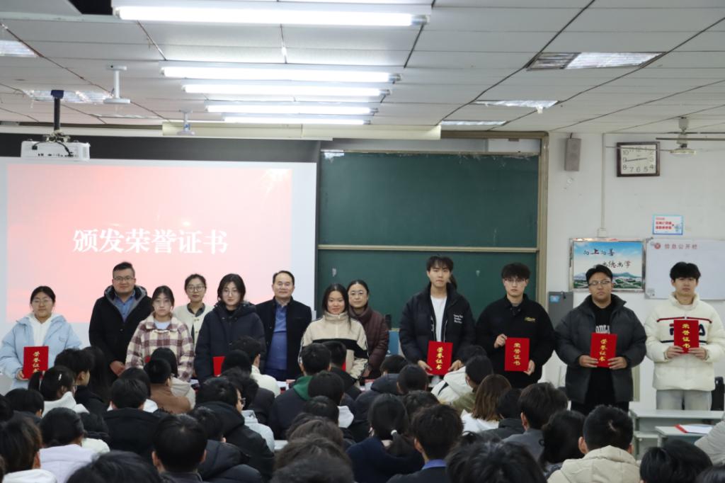会上首先宣读了《mk体育关于表彰2024年度团学工作先进集体及个人的通报》,并向他们颁发了荣誉证书,以表彰他们在学习生活、星级宿舍、社会工作和文体活动等方面的突出成绩。随后,国家奖学金获得者庄博凯、五星级宿舍代表唐皓仪、创新创业竞赛代表李仕豪依次发言,分享了他们的学习心得、成长经历和个人经验,为同学们提供成长建议。