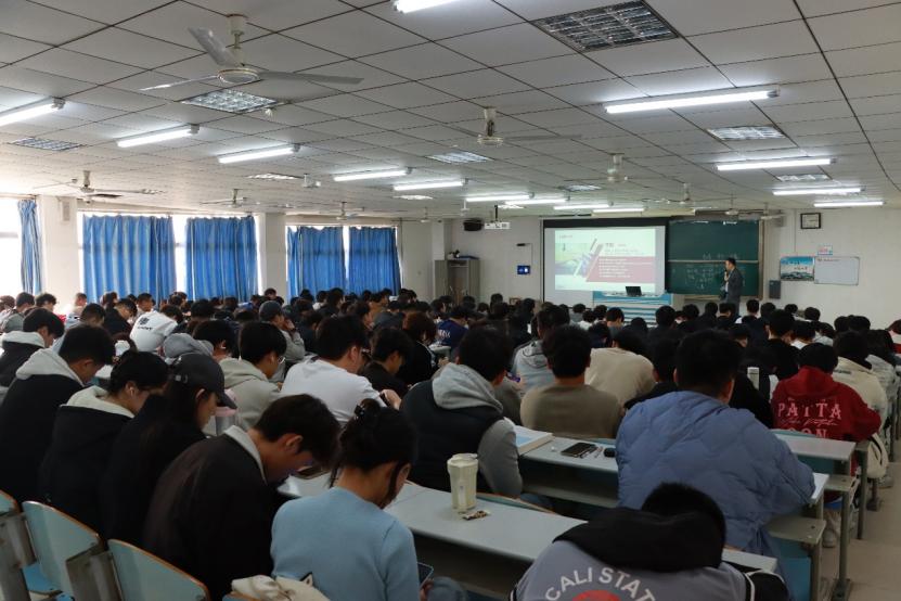 讲座伊始,李鹏结合当前就业形势与行业发展趋势,指出当代毕业生面临的三大主流选择——考研、考公及就业,并深入剖析了每项选择的时间成本、备考难度及未来发展。李鹏结合机电行业特点,指出“软硬兼修”是企业用人的核心需求,“嵌入式开发”是当前行业的用人缺口,建议同学们有针对性地深化学习,提升行业竞争力。他强调:“无论是升学深造还是进入职场,都需要以清晰的自我认知为基础,结合个人兴趣、专业特长和社会需求,选择最适合自己的发展路径。”随后,同学们积极提问,内容涉及跨专业求职、实习选择、考证与就业关联等,讲师耐心解答,提供针对性建议,现场互动频繁,气氛热烈。