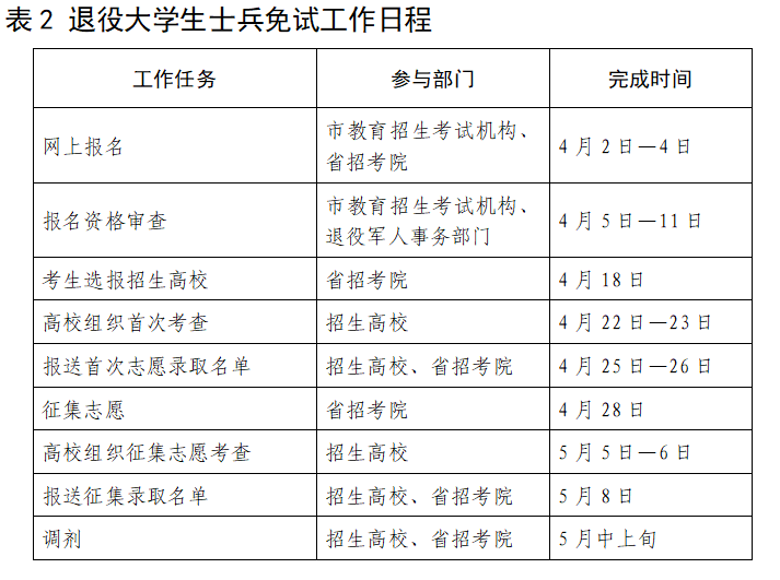 1.退役老员工士兵考生报名资格审核由市级教育招生考试机构及退役军人事务部门审核。各市教育招生考试机构要联合退役军人事务部门认真审核考生材料是否符合报名条件,并于4月12日前通过管理平台完成审核。