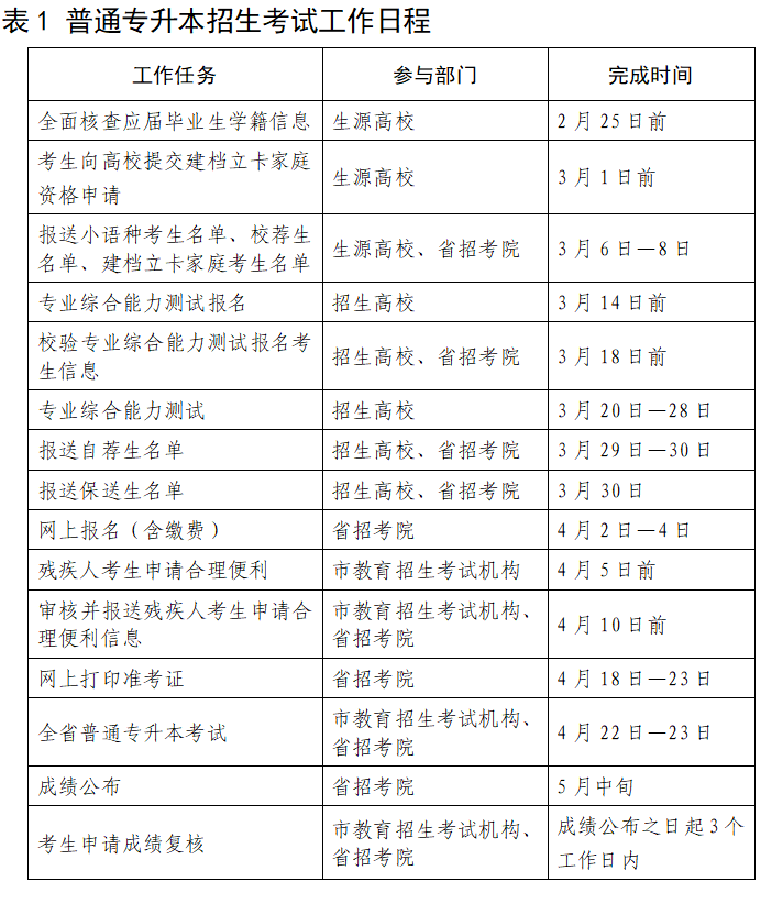 附件2:山东省2023年普通专升本招生考试工作日程表