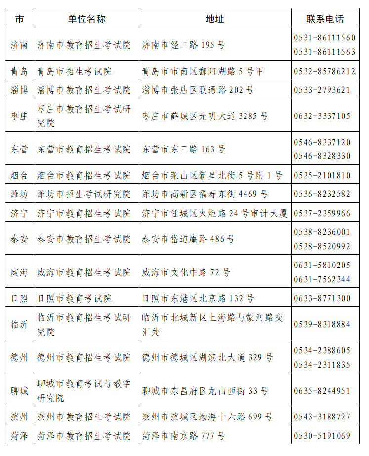 附件3:各市教育招生考试机构地址及联系方式