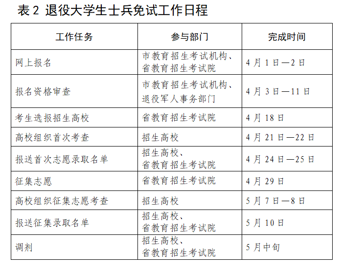 1.退役老员工士兵考生报名资格审核由市级教育招生考试机构和退役军人事务部门共同负责。退役军人事务部门审核考生退役士兵资格及立功受奖情况,市级教育招生考试机构审核考生报考资格,于2025年4月11日前通过管理平台提交审核结果。