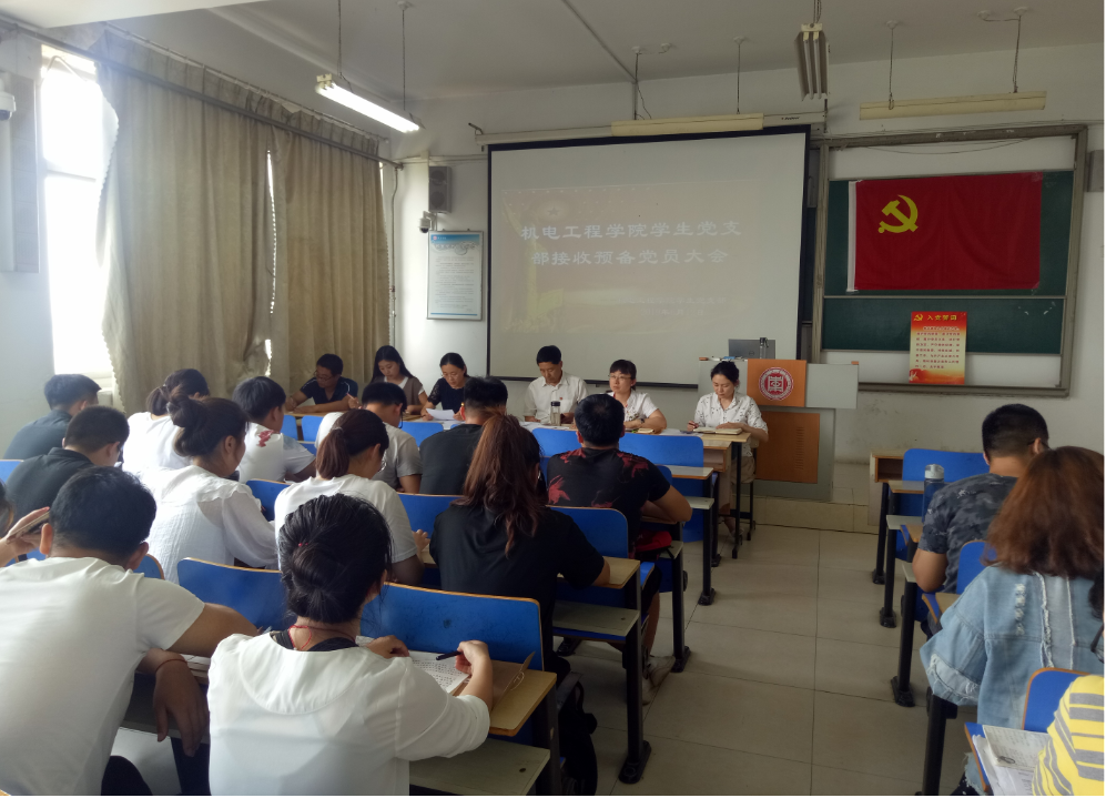 会议首先由10位发展对象依据《入党志愿书》汇报自己的简历、家庭主要成员、主要社会关系情况和对党的认识、入党动机、现实表现、今后努力方向以及需要向党组织说明的问题;接着由入党介绍人认真负责地向支部大会介绍对入党申请人培养考察情况,并表明个人对其入党的意见;随后,焦成冉同志代表支部委员会向大会报告对入党申请人审查、了解以及公示情况,提出支部委员会对其入党的意见。与会党员对接收事宜进行讨论并进行无记名投票,全票通过黄腾等10位发展对象成为预备党员议题。之后,新发展党员代表黄腾进行发言。