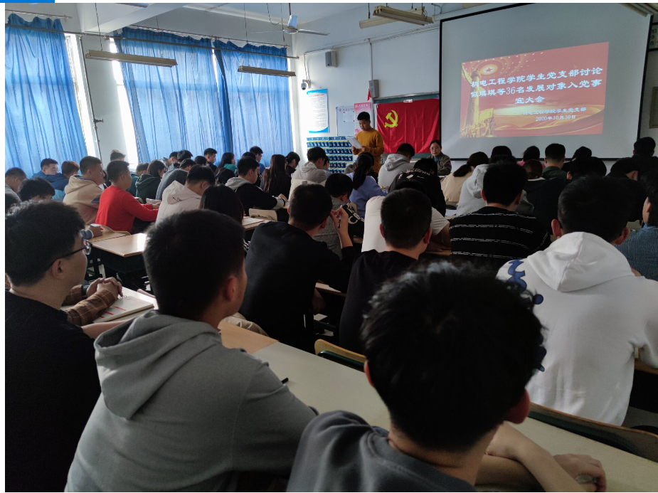 会议首先由36位发展对象依据《入党志愿书》汇报自己的简历、家庭主要成员、主要社会关系情况和对党的认识、入党动机、现实表现、今后努力方向以及需要向党组织说明的问题;接着由入党介绍人认真负责地向支部大会介绍对入党申请人培养考察情况,并表明个人对其入党的意见;随后,刘增同志代表支部委员会向大会报告对入党申请人审查、了解以及公示情况,提出支部委员会对其入党的意见。与会党员对接收事宜进行讨论并进行无记名投票,全票通过陈森等36位发展对象成为预备党员议题。之后,新发展党员代表似琪琪进行发言。